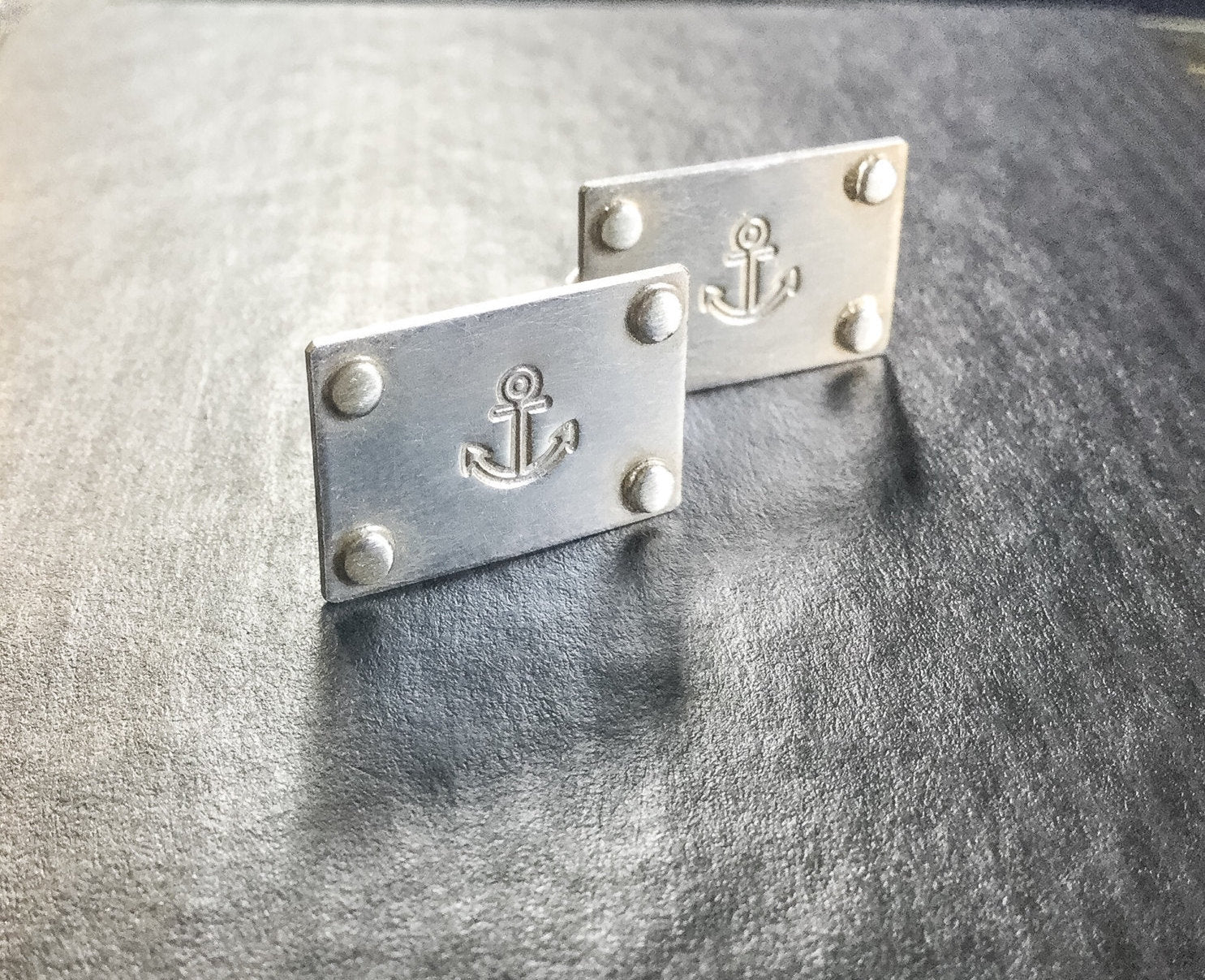 They are inscribed with an anchor. 4 small silver discs have been soldered onto the front to add more of a nautical feel.