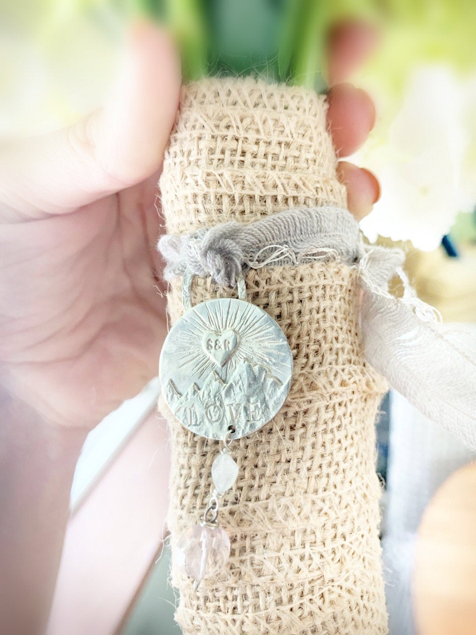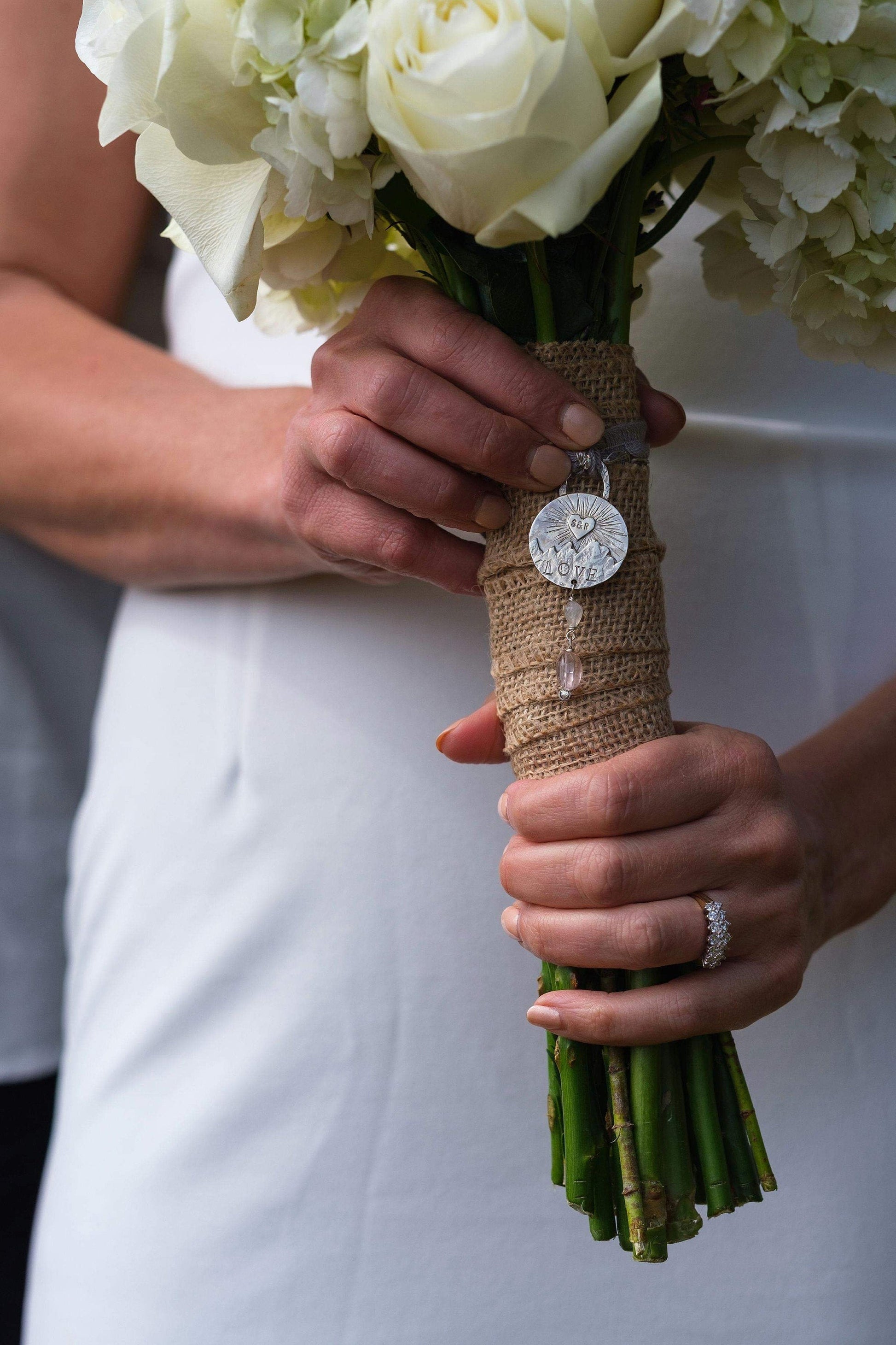 Bouquet charm to adorn her bridal bouquet that can be worn as a pendant after the wedding or turned into the couples first christmas tree ornament!