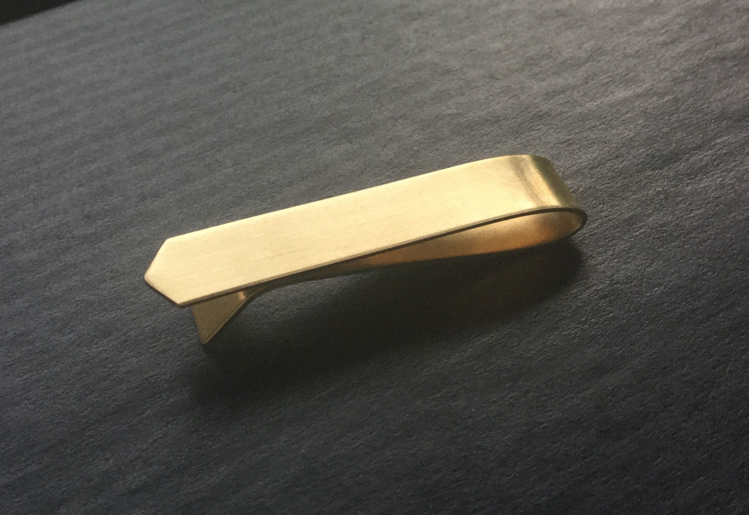 This tie bar has completely hand forged out of brass (gold toned metal)