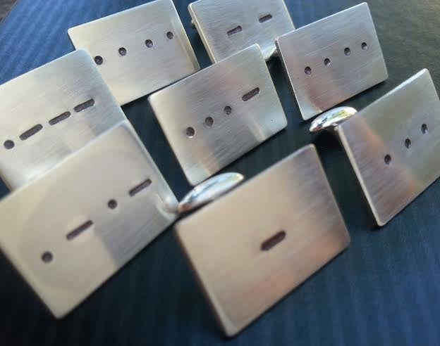 Morse Code Rectangular Cuff links - 18 gauge thicker and more durable - Sterling Silver - Custom Text or Morse Code - Great Groomsmen gift