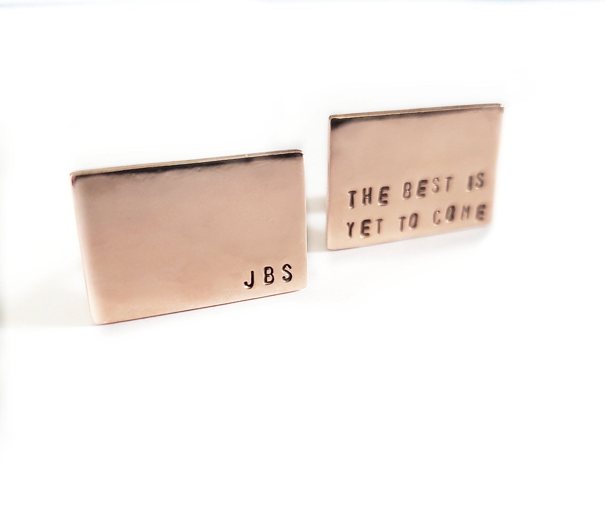 "I found these cuff links literally a week and a half before my wedding (had I saw them sooner I would’ve ordered them literally months in advance because they were perfect) - I sent a message over wondering about an advanced shipping timeline because I absolutely needed these for my future husband… And communication was so quick and amazing, and I was able to give these to my husband on our wedding day!! It really brought a special little touch to our day, and now, we have something that we can use for future formal events that will always be a part of that special day! Thank you so much!!!" -Christine